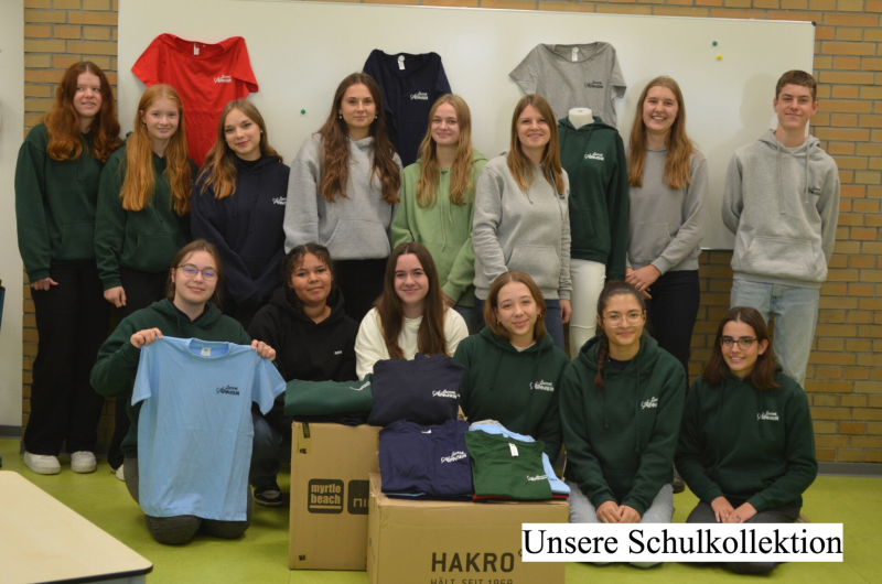 Wir haben zudem selbst T-Shirts und Hoodies gestaltet, die immer wieder bei Verkaufsaktionen in der Schule erworben werden können.